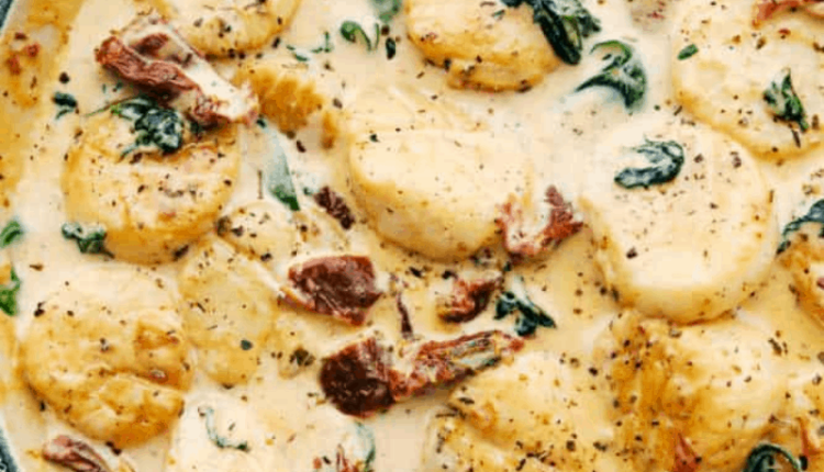 - Add: Gently add the scallops back to the sauce, giving it a quick stir. Serve Tuscan garlic scallops over your favorite pasta.
