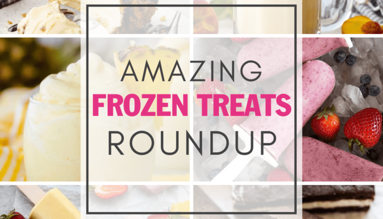 A collage of 6 different rfrozen treats with the words " Amazing Frozen Treats Roundup" in the middle.