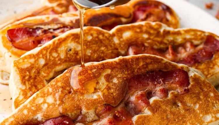 - Cook and Flip: Cook the pancakes until bubbles begin to form on the top and flip each pancake. Continue to cook until the pancakes are golden on each side. Repeat with the remaining stirps of bacon and pancake batter.