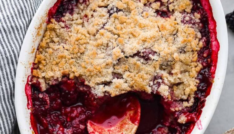 The flavors are perfectly balanced with the sweet and tart of the blackberries, the warm cinnamon and the buttery crumble topping. Pair it with a large scoop of vanilla ice cream and this dish will be an absolute hit!