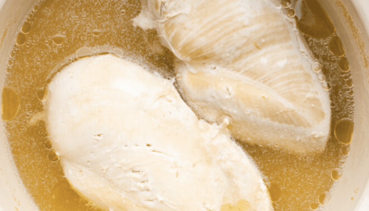 Boiling chicken at home is the best way to cook chicken for recipes that require it. Learn how to cook tender and moist chicken breasts over the stove in chicken broth. With just two ingredients, boiled chicken is simple and easy!