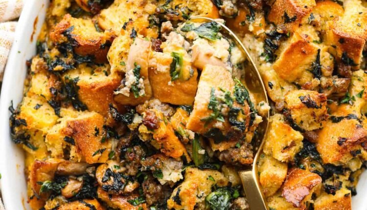 Make ahead! Once the bread and fillings have been tossed with the egg mixture, this can be covered and set in the fridge overnight. It’s a great option for when you want to prep the night before and then pop it in the oven first thing in the morning.