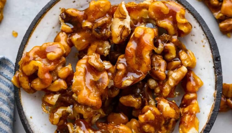 Elevate your food with these easy Candied Walnuts. With just sugar and walnut halves, these are a sweet and crunchy treat perfect for salads, desserts, or on their own as a delicious snack!