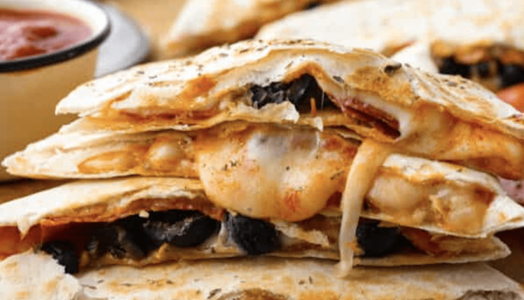 - Cook: Heat a large skillet or griddle over medium-high heat. Fold the tortilla over and cook for about 2 minutes on each side. Cook until the cheese is melted and the tortilla is golden brown.