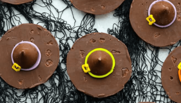 These Easy Witch Hat Cookies are sure to put a spell on your Halloween party guests! With a fudge cookie base and a Hershey’s kiss on top, they are simple to put together and delicious to eat. These are the perfect treat for kids to help assemble and clean-up is a breeze.