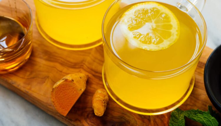 As an accent, try garnishing your turmeric tea with a round of lemon or orange. If you prefer a sweeter drink, add a light drizzle of honey or maple syrup (up to 1 teaspoon, to taste, should do the trick).