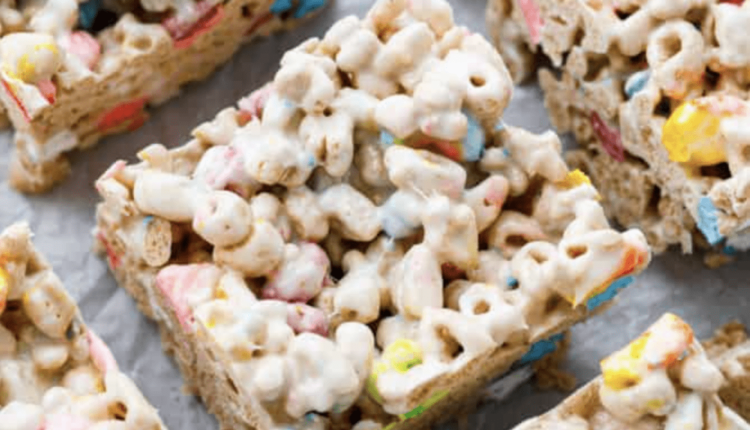 If you are all out of ideas for a fun new dessert, then I have just the thing for you. These Lucky Charms treats are so unique and absolutely delicious, they just might be your new go-to recipe. They are just like a rice krispie treat but with more fun and flavor! You make them in the same way, by melting down marshmallows in a pot and tossing the cereal in it until it’s a sticky sugary delicious mess. The best part about these bars is they are a no-bake recipe that is so easy to make, but everyone will be talking about them because they are unique and different!