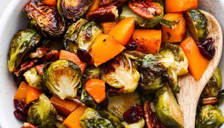 Roasted Brussels Sprouts and Butternut Squash in a Maple Glaze