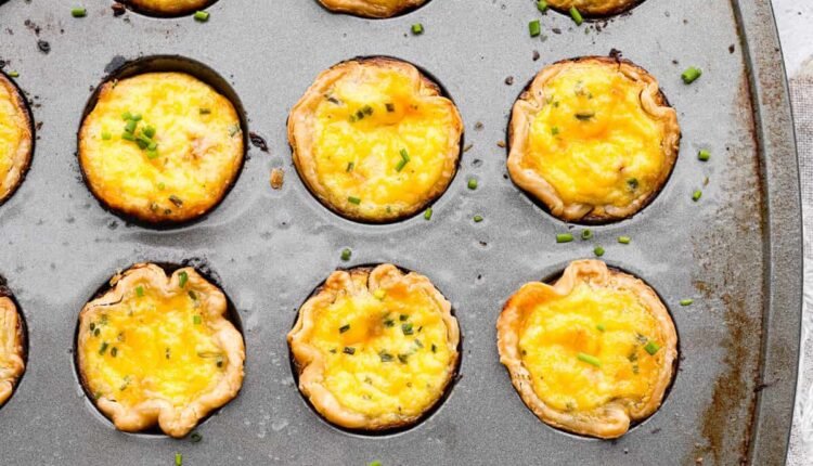 - Crustless Quiche: If you’d prefer your mini quiche without the crust, spray your muffin pan with cooking spray and fill the cups with the egg filling. These won’t need to bake as long, so start checking on them after about 20 to 30 minutes of baking.