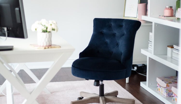 When we first moved into this house, we painted the office grey. We were going through a huge grey phase, but over time it started to wear on me, and I found the office was less than inspiring. I started to feel blah whenever I was in there (I also regret painting the basement grey…ugh!). One of my blog readers actually warned me about picking grey for an office, but I didn’t listen…you guys are always right! After going back and forth over what colour(s) I wanted to paint my office (I tested everything from spa green to super soft blush pink and, yes, even yellow!), I finally settled on a navy–charcoal blend and blush pink.