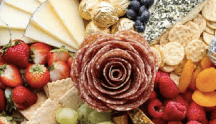 - Place the flower in the center of the charcuterie board.