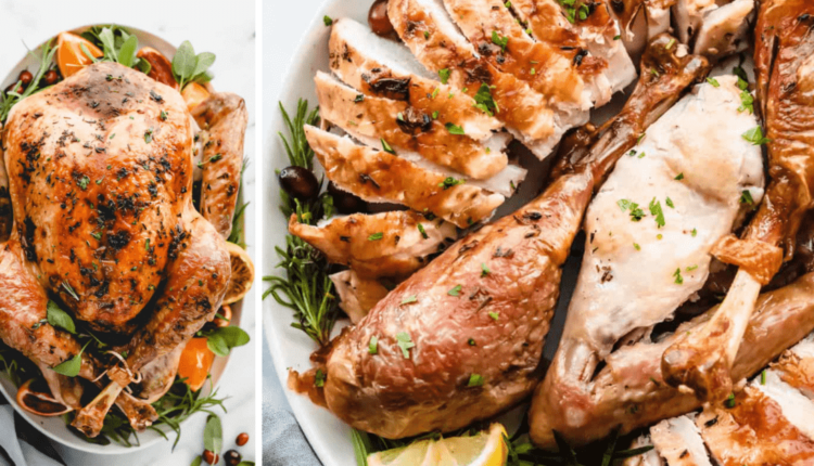 This oven-baked herb turkey is golden brown, tender, and juicy! It’s the absolute perfect turkey recipe that will make you wish that Thanksgiving came around more often!