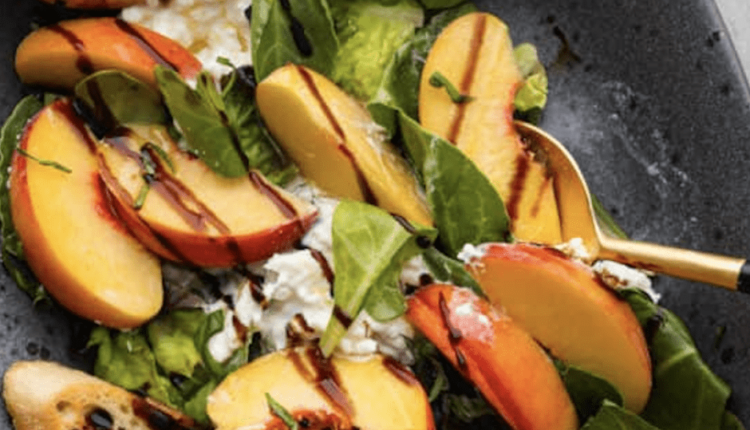 - Assemble Salad: To assemble the salad, layer the greens on a platter. Then, top the greens evenly with the prepared peach slices.