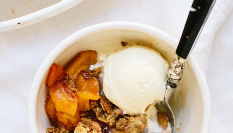 Change it up: Substitute any variety of stone fruit or berries for the peaches, by weight. Cherries, plums, sliced strawberries, blackberries or blueberries would be lovely.