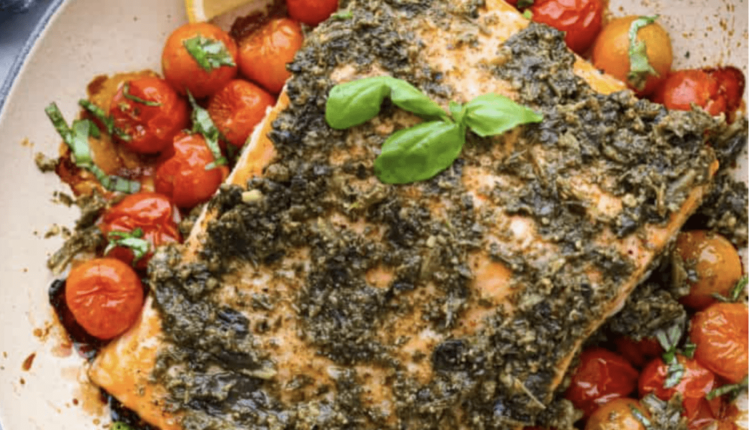 - Add Pesto: Spread the pesto sauce over the salmon and then continue to bake for an additional 5-8 minutes.