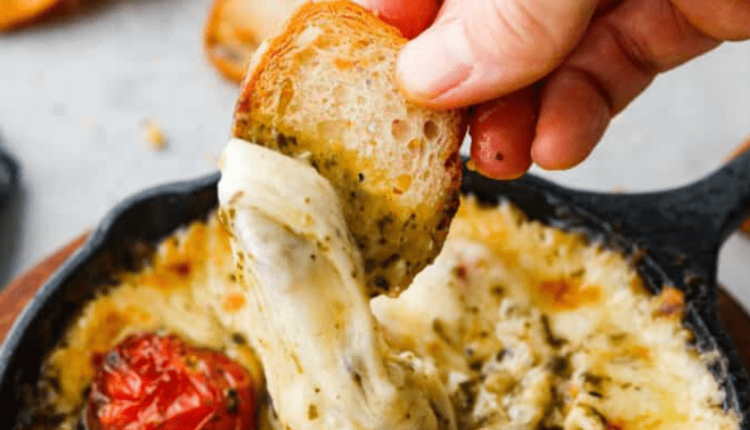 Provoleta is a traditional Argentine dish made from melted provolone cheese served in a hot skillet. It has a gooey, melted texture with a rich and salty flavor that is perfect for dipping with crusty bread. I’ve added pesto and tomatoes for an extra pop of bubbling flavor. This is one dip you don’t want to miss!