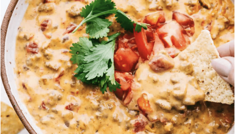 This amazing Rotel Dip is the easiest and most delectable dip for any occasion! Perfectly spiced hamburger, creamy cheese, and full flavored Rotel tomatoes combine in this quick appetizer that everyone will love.