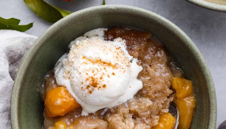 Keyword crockpot peach cobbler, peach cobbler, slow cooker peach cobbler