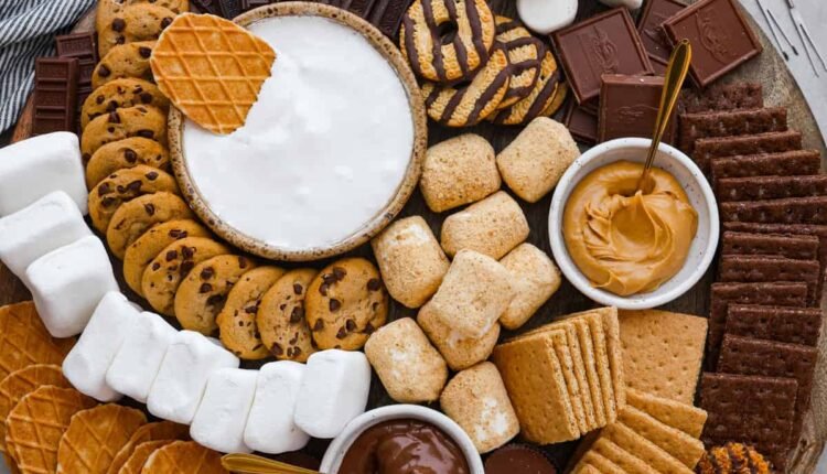 Just in time for summer barbecues and camping trips, this s’mores charcuterie board is here to sweeten things up! It features a mix of different types of chocolate, crackers, marshmallows, and spreads so everyone in your family can create their own perfect sweet treat.