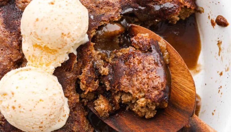 This dessert is so easy to make and kind of magical. Not to mention it is perfect for Fall baking! This is basically a cinnamon cake, but we’re going to layer things up with some melted butter, the cake batter, and then pour hot water over the whole thing. I know it sounds crazy, but just trust me on this! You will end up with a moist cinnamon cake that hides an indulgent caramel sauce underneath!