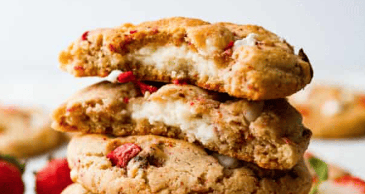 Meet your new favorite cookie recipe: soft and sweet strawberry cookies filled with a gooey cheesecake center. These golden-brown morsels of goodness will be devoured as soon as they’re out of the oven!