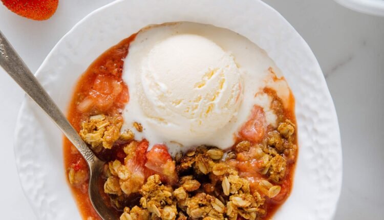 Tart rhubarb balances sweet, jammy strawberry flavor in this irresistible springtime dessert. If you can find rhubarb, you’re in for a treat!