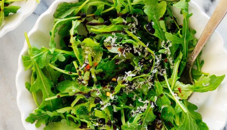 Make this simple arugula salad recipe with balsamic vinegar and olive oil! It takes seconds to prepare. Meet your new favorite side salad! Make as many side salads as you’d like with this basic formula.