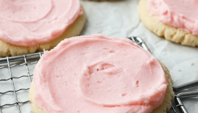 - Mix and Frost: Cream together butter, sour cream, and salt. Add the powdered sugar and then add in the milk to the desired consistency. Add a drop of red food coloring to make the perfect pink frosting! Spread over cooled cookies.