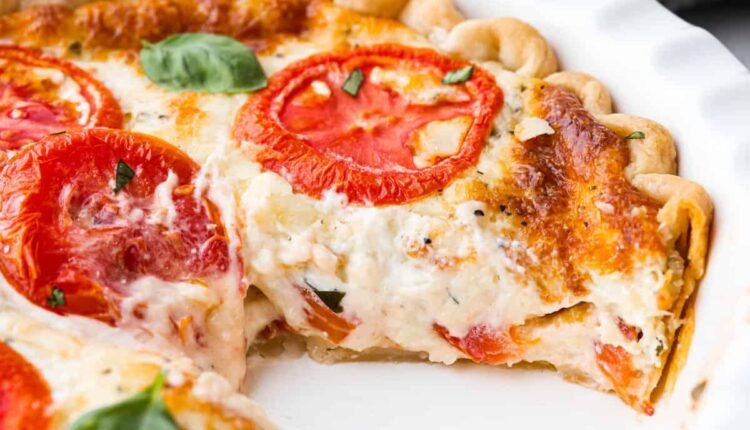 - Layer: Place the 9-inch pie shell into your pie dish and arrange a single layer of sliced tomatoes on the bottom. Cover the tomatoes with half of the cheese mixture and repeat this step.