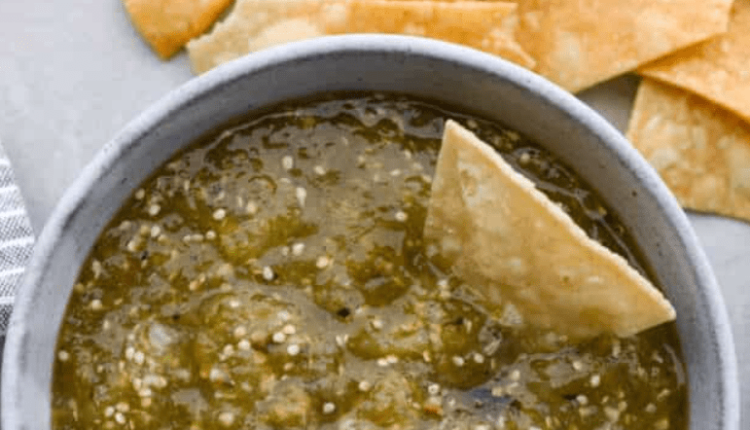 Tomatillo salsa is a delicious salsa that is commonly used in many Mexican dishes! I always use it in enchiladas, burritos, and of course, with tortilla chips! It’s made with a blend of jalapeño peppers, tomatillos, onions, and tasty seasonings. It has a bit of spice to it because of the jalapenos, but you can easily control that by taking out the seeds! The seeds bring in all of the heat so leave those out if you are craving a more mild version of this salsa.